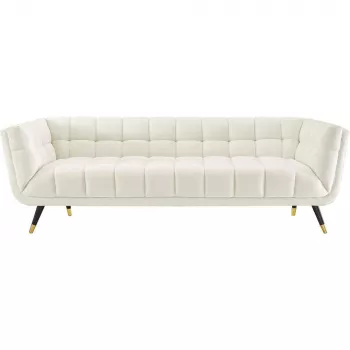 Adept Mid-Century Modern Ivory Velvet Tufted Sofa